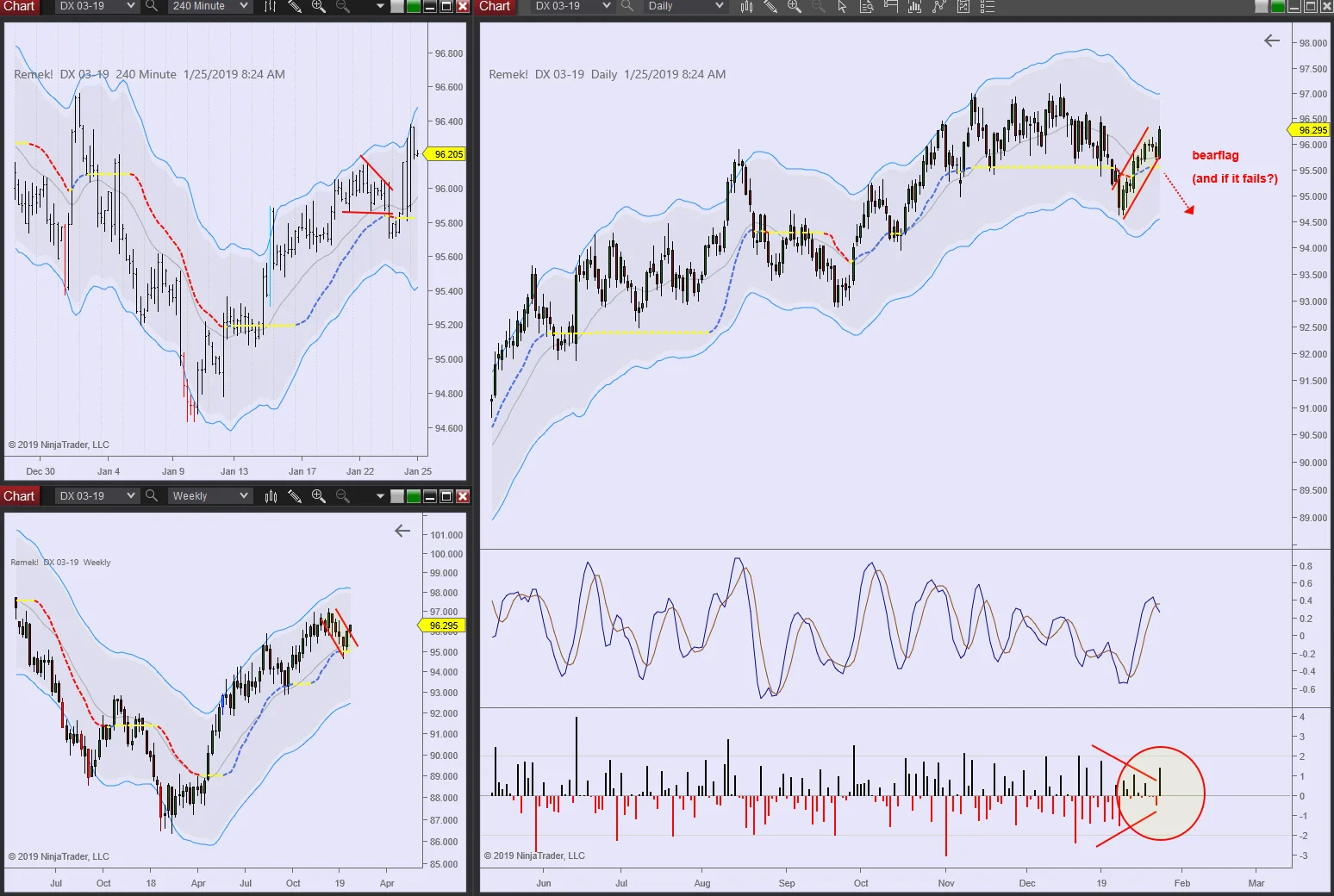 DX 2019 01 25 - Weekly timeframe taking control, daily bearflag failing (with classic fakout on the 240m)