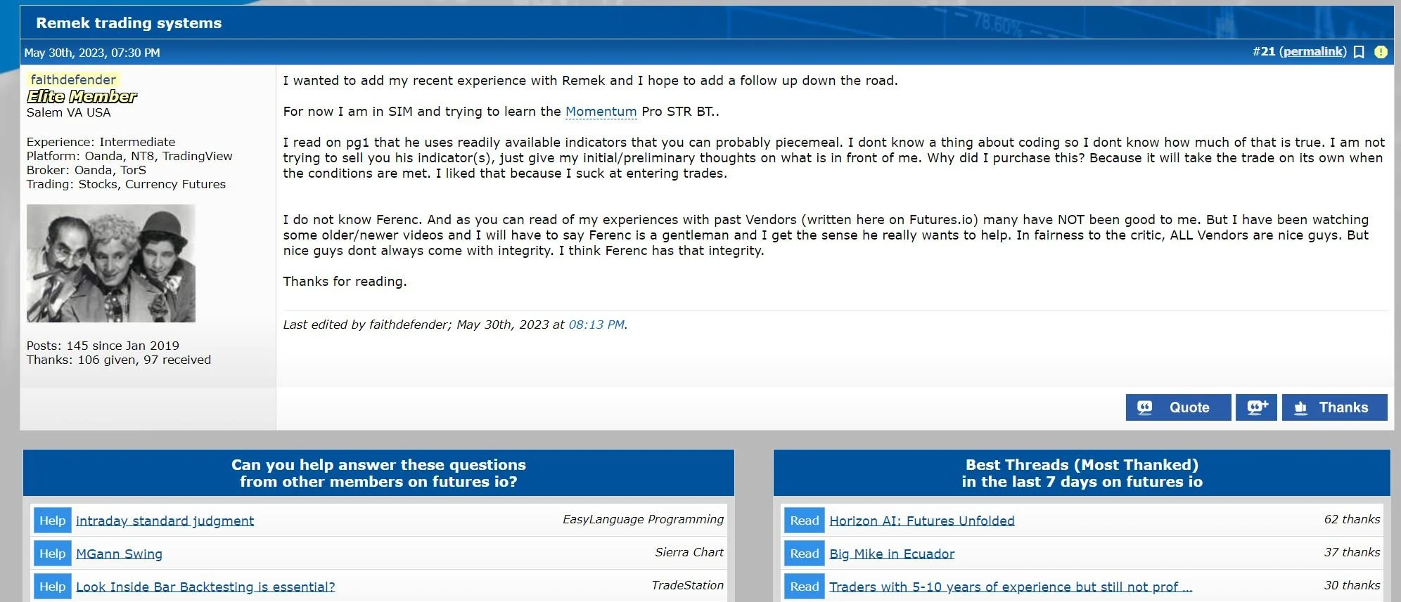 Big Mike’s Futures.io is probably the largest and most important site for traders, so it was an especially nice surprise to see this post. Now, we don’t know who the reviewer is, but if you see your post here, thank you!