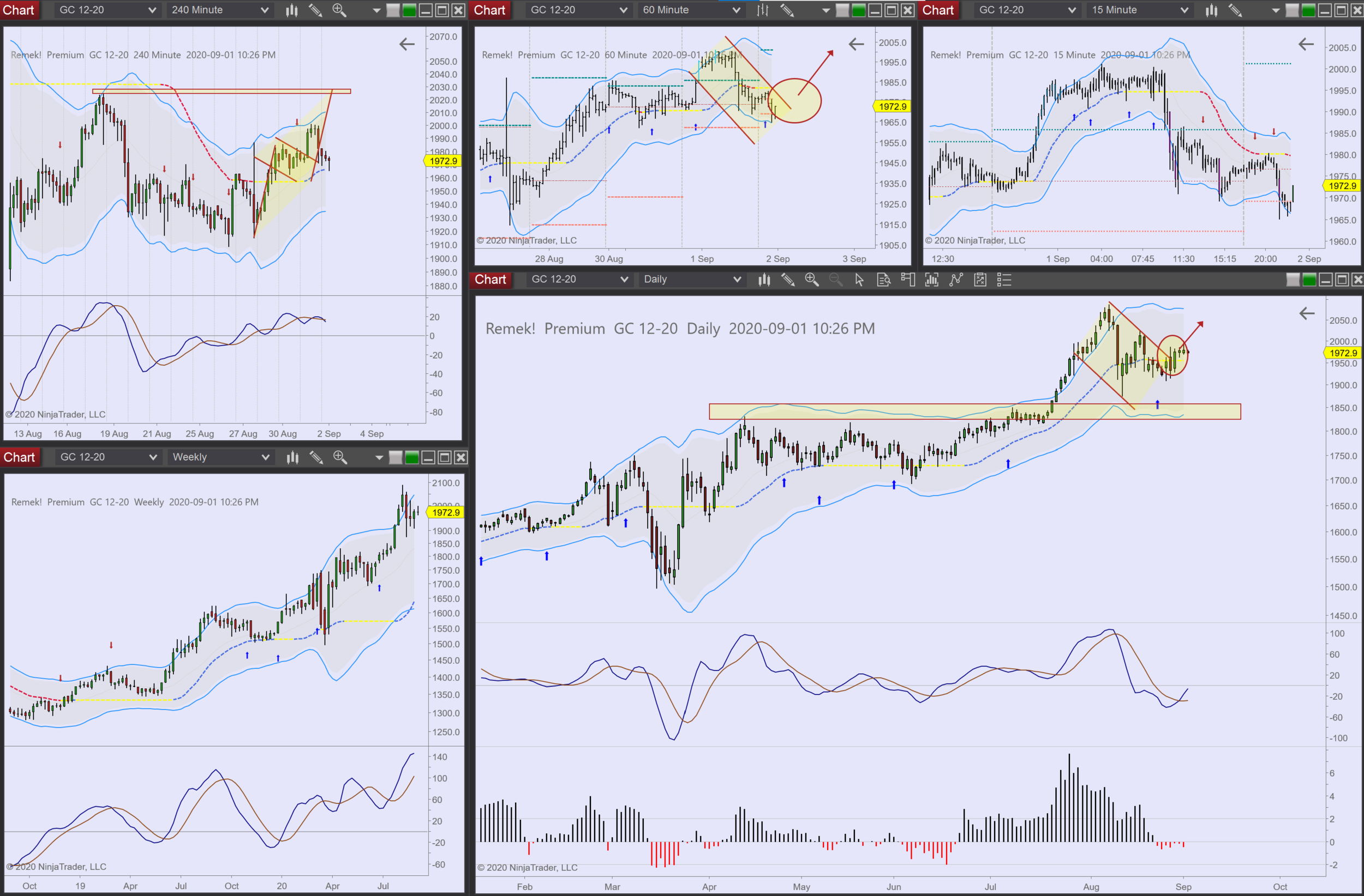 - Finally, on smaller accounts trades can be executed with micro contracts (MES, MGC etc.). While some will say "that way you can't make money", our answer is: but one will learn to fish, and that's worth all the money!