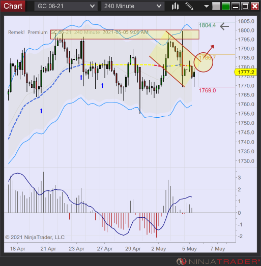 Commodities: CL and HO solid 1Rs today. NG upside break expected. GC price rejection at 1800, but could be temporary. Monitoring.