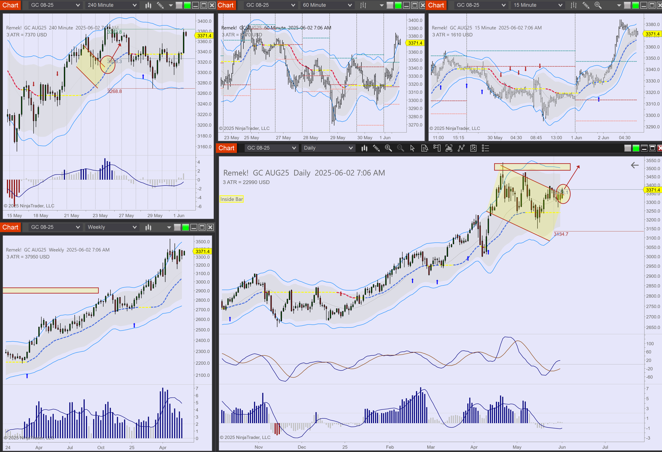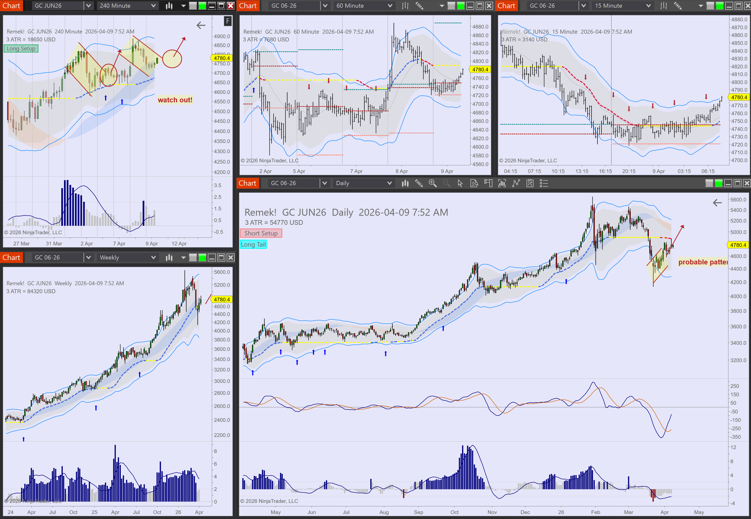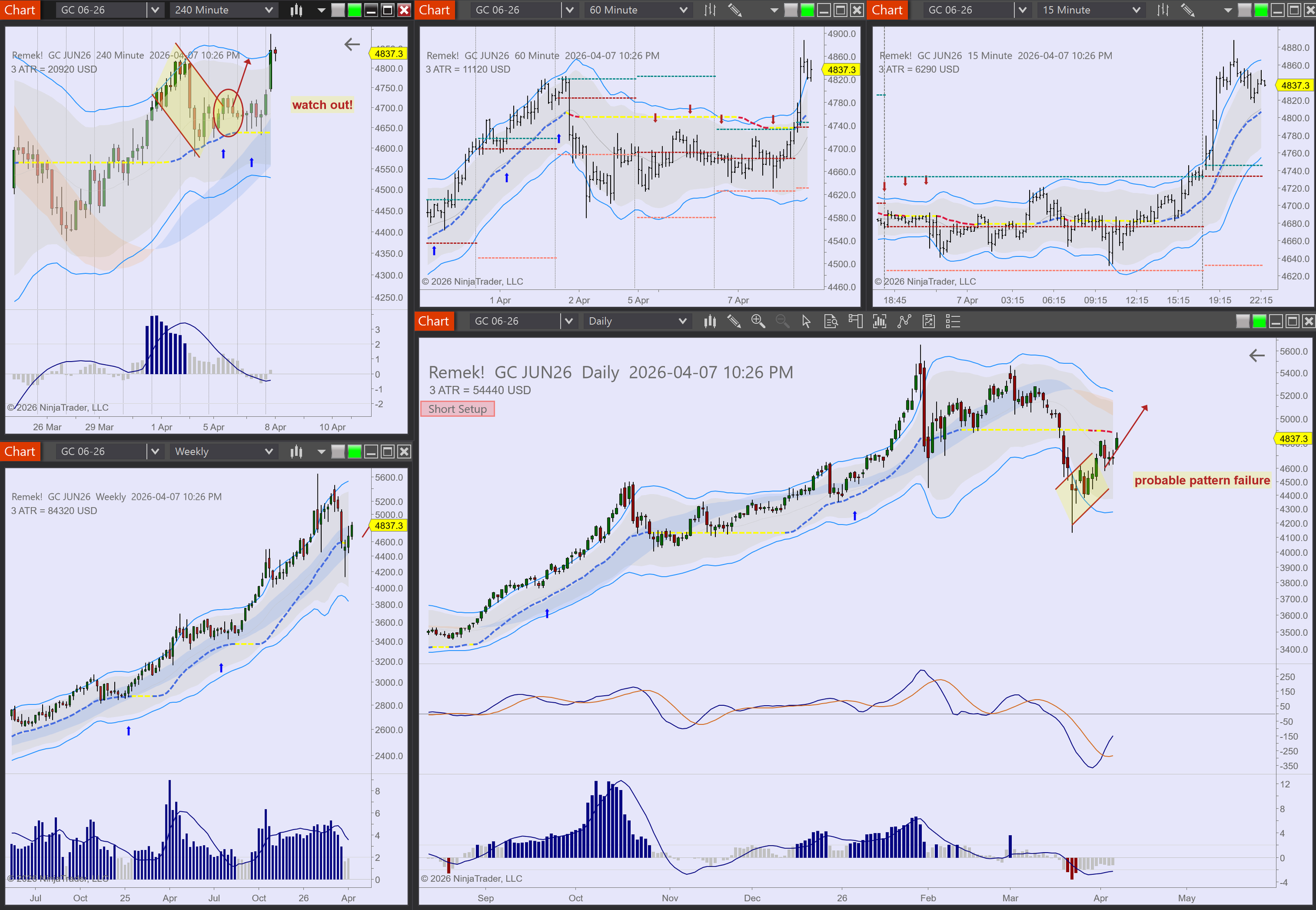 - Finally, on smaller accounts trades can be executed with micro contracts (MES, MGC etc.). While some will say "that way you can't make money", our answer is: but one will learn to fish, and that's worth all the money!