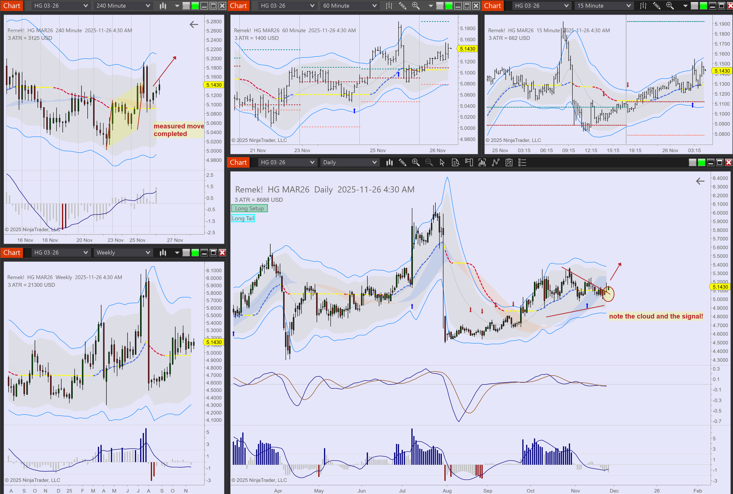 Commodities: GC, SI long setups, HG moving