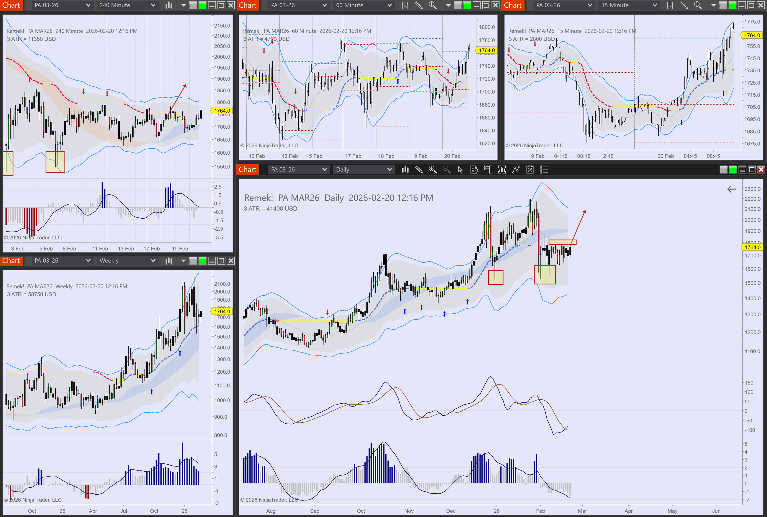 Commodities: CL long in progress. GC long in progress, longs triggering on PA, PL