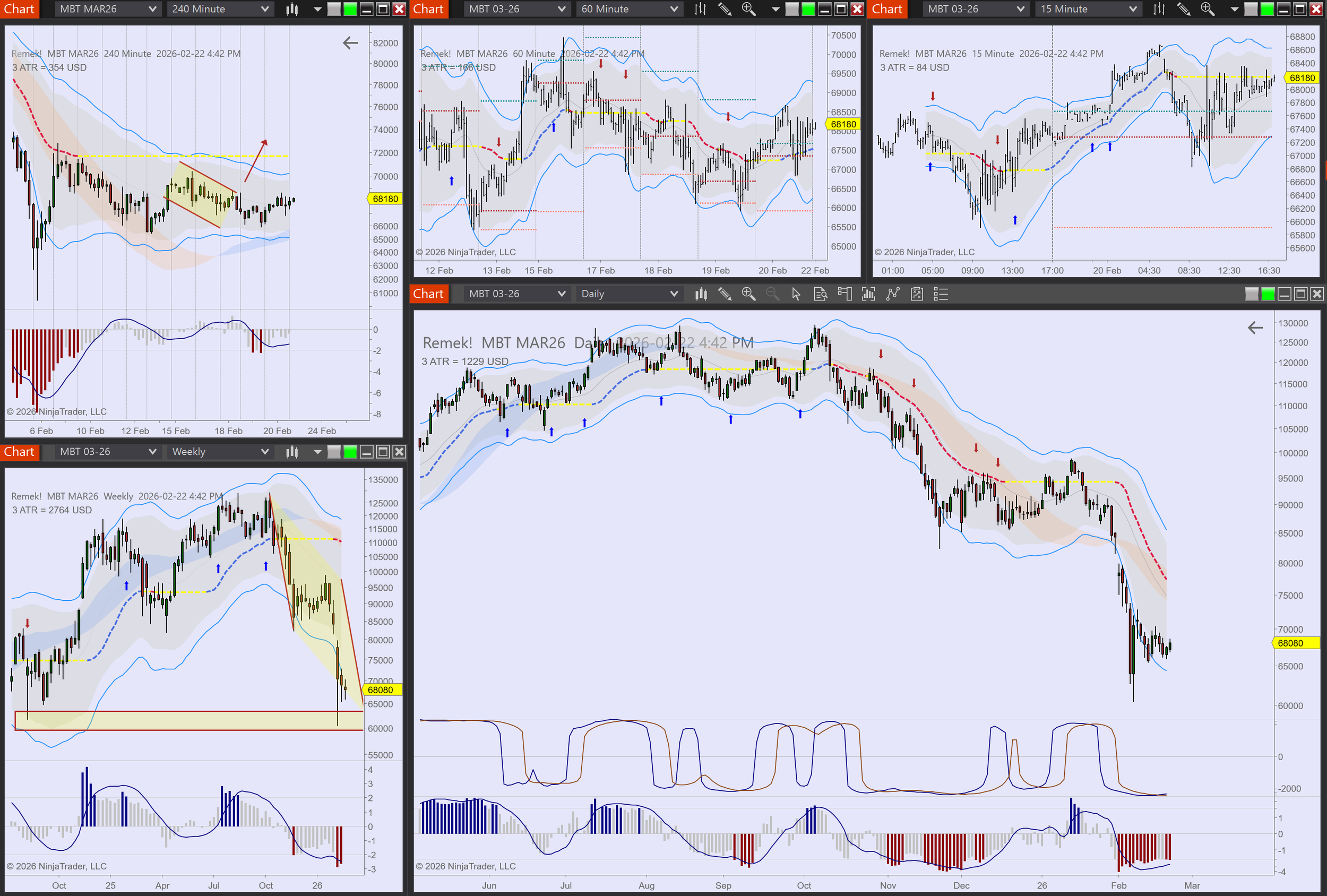 Currencies: several long setups. 6J long setting up on daily. Potential reversal on MBT continues