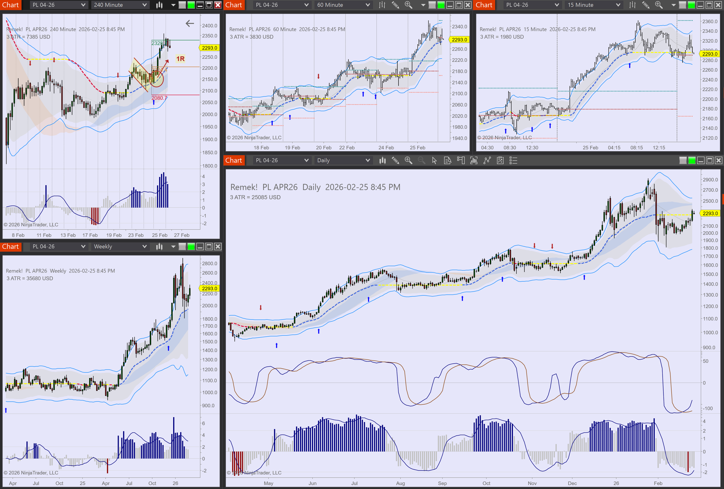Commodities: CL long setup, watching PL, PA for new longs