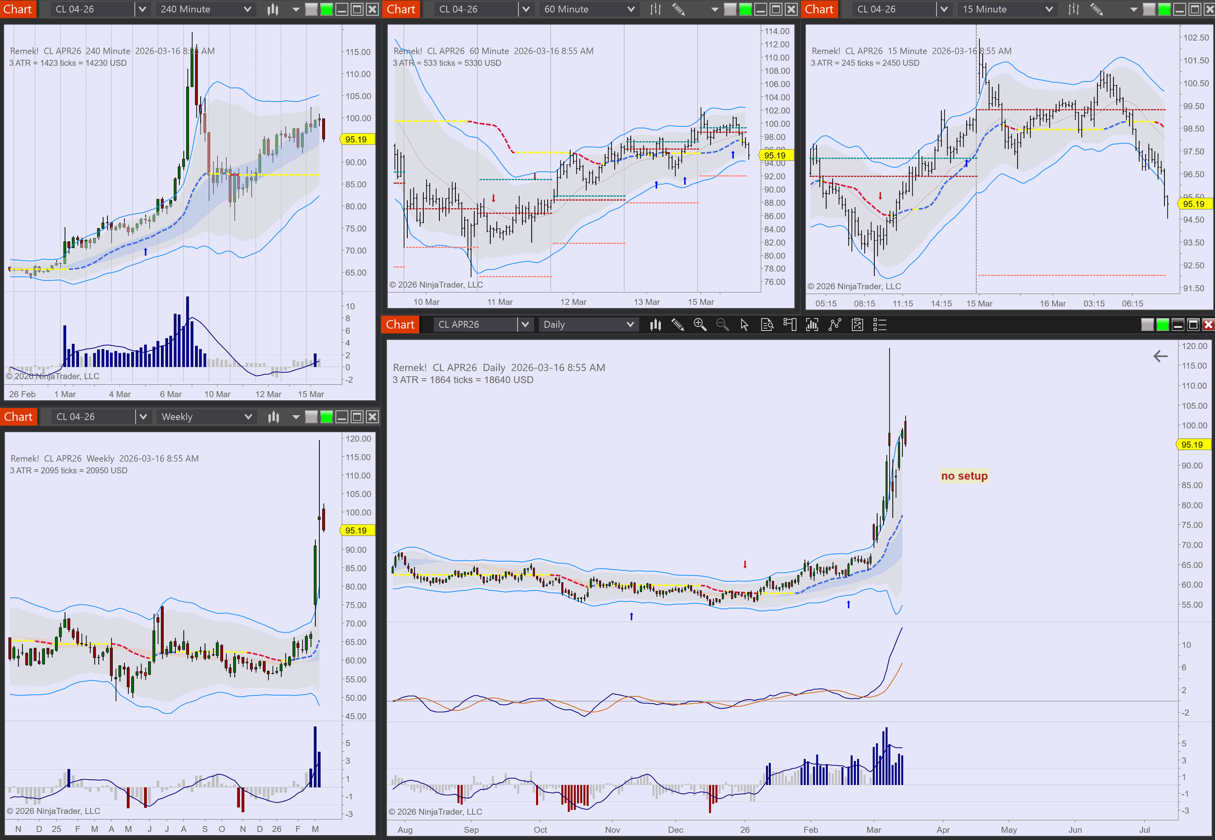 Commodities: CL long in progress. Watching for long entry on GC, SI