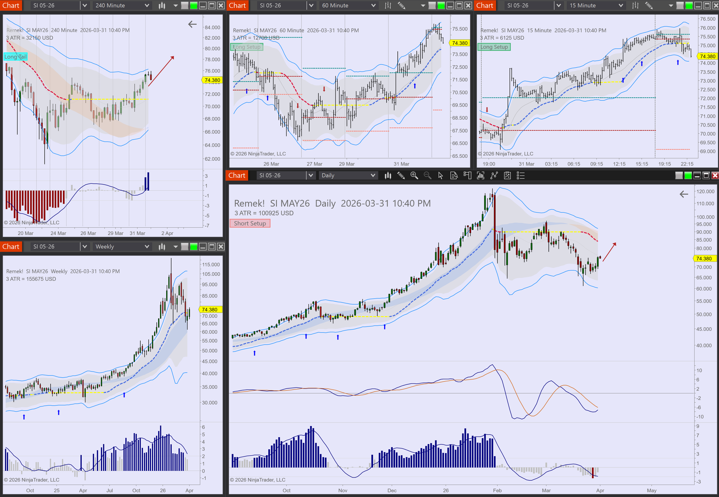 Commodities: CL long bias, GC, SI long bias