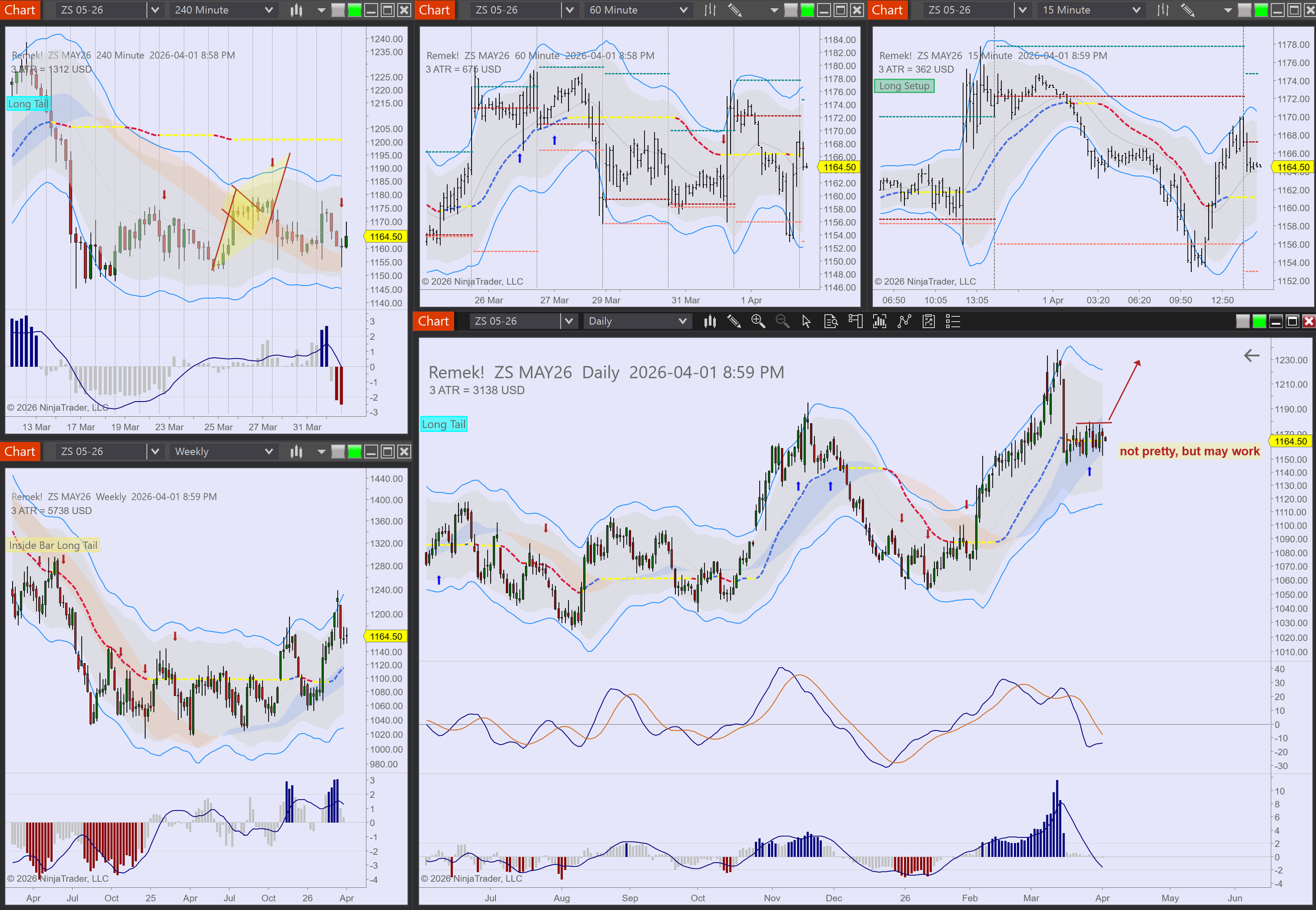 Agriculturals: long setups on ZW, ZS, ZC, some of them a bit messy
