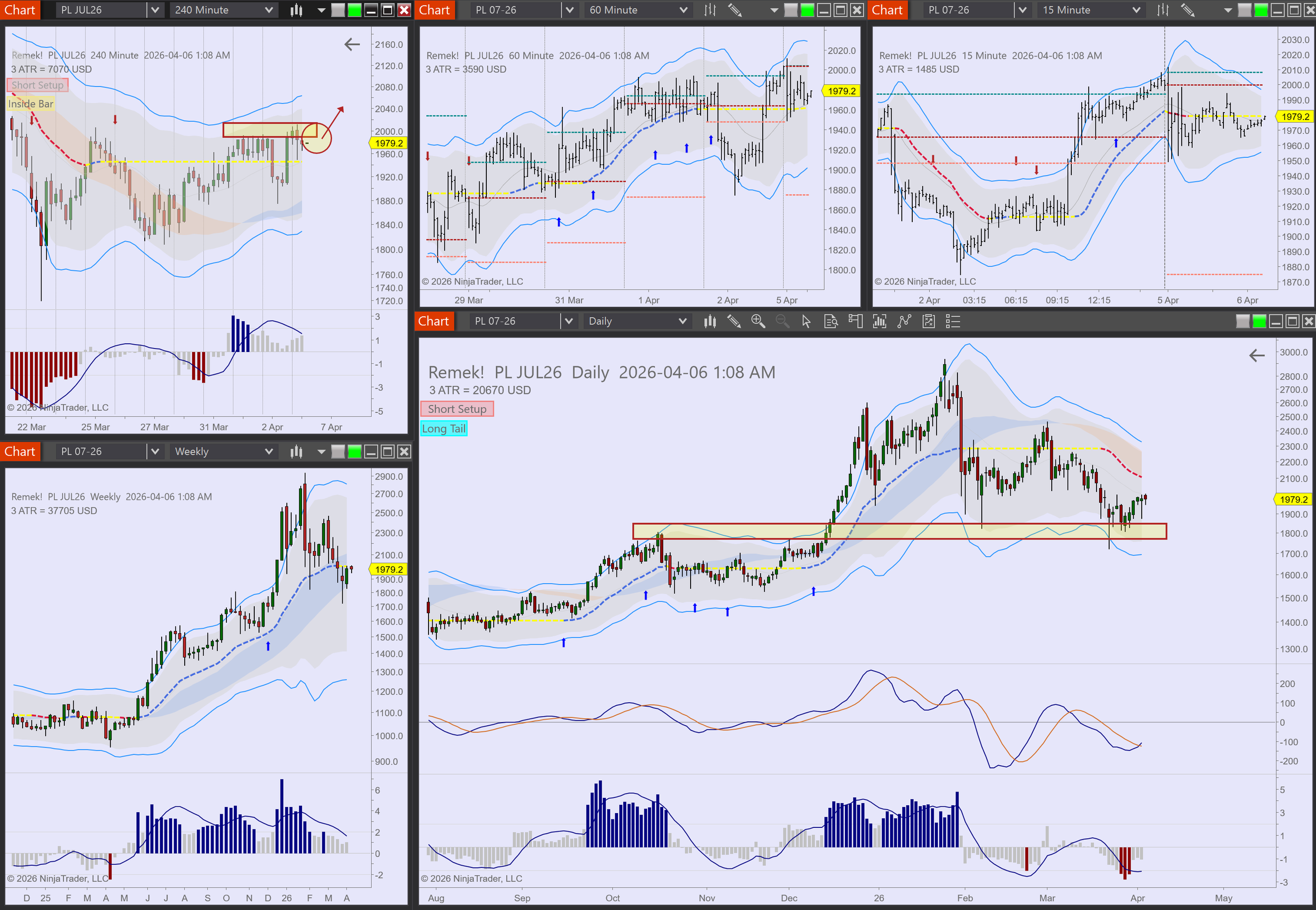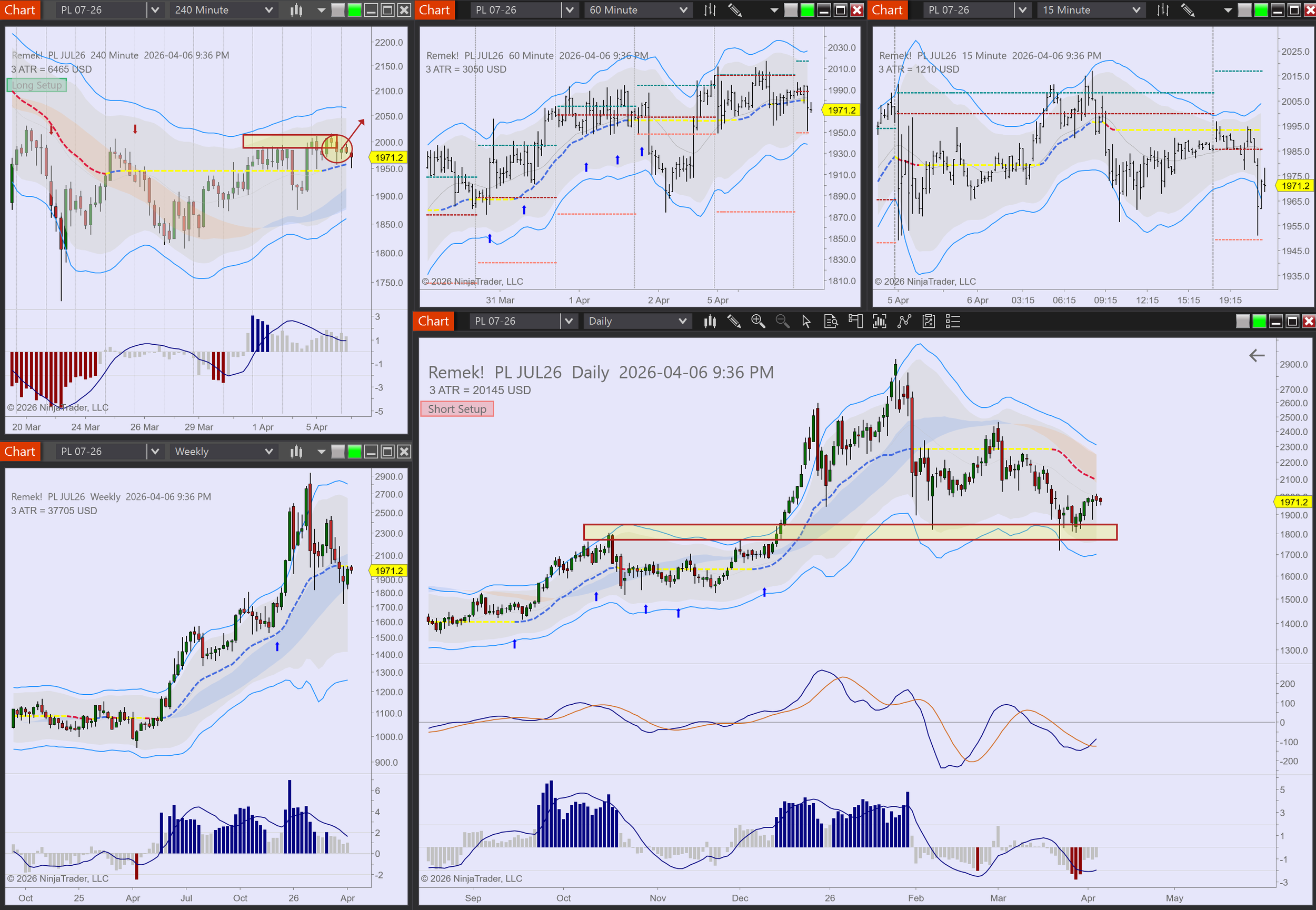 Commodities: GC, SI, PL, PA look for longs. CL expected to burst.